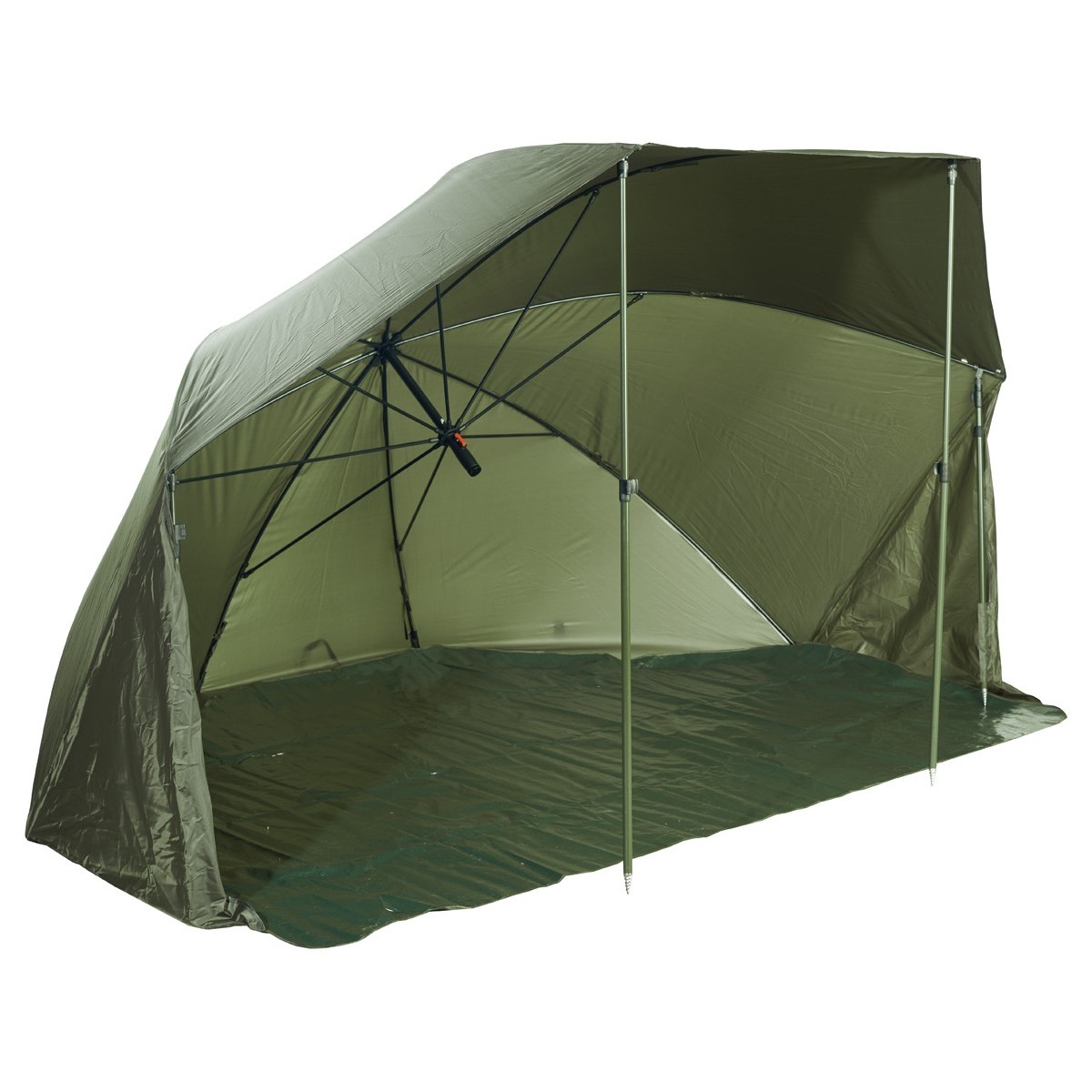Nowoczesna konstrukcja, łącząca wygodę rozkładania czaszy parasola z funkcjami namiotu, za które odpowiada dopinana podłoga oraz boczne ścianki. Idealne rozwiązanie dla wędkarzy łowiących stacjonarnie w nocy lub w dzień zarówno sumy, karpie, jak i podczas zasiadek spławikowo-feederowych. Zapewnia ochronę przed deszczem, wiatrem i słońcem. Jest wygodne w transporcie i przechowywaniu. Mocne śledzie oraz solidna konstrukcja nóżek ułatwiają wędkarzowi rozłożenie brolly w każdych warunkach terenowych.