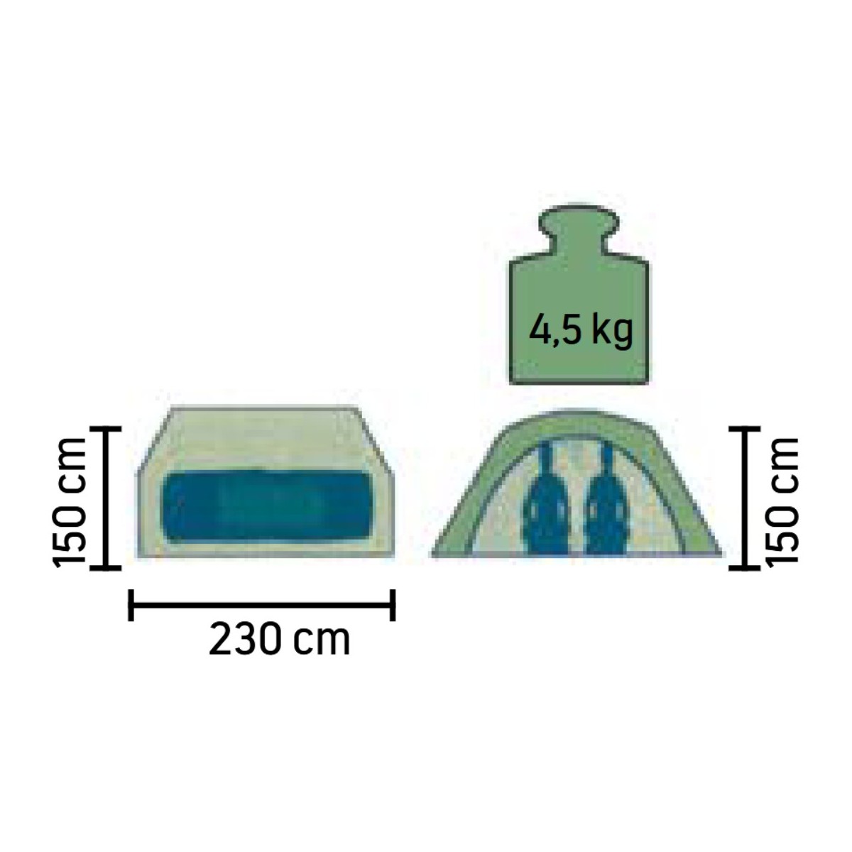 • wymiary: długość – 230 cm/szerokość – 150 cm/wysokość – 150 cm,