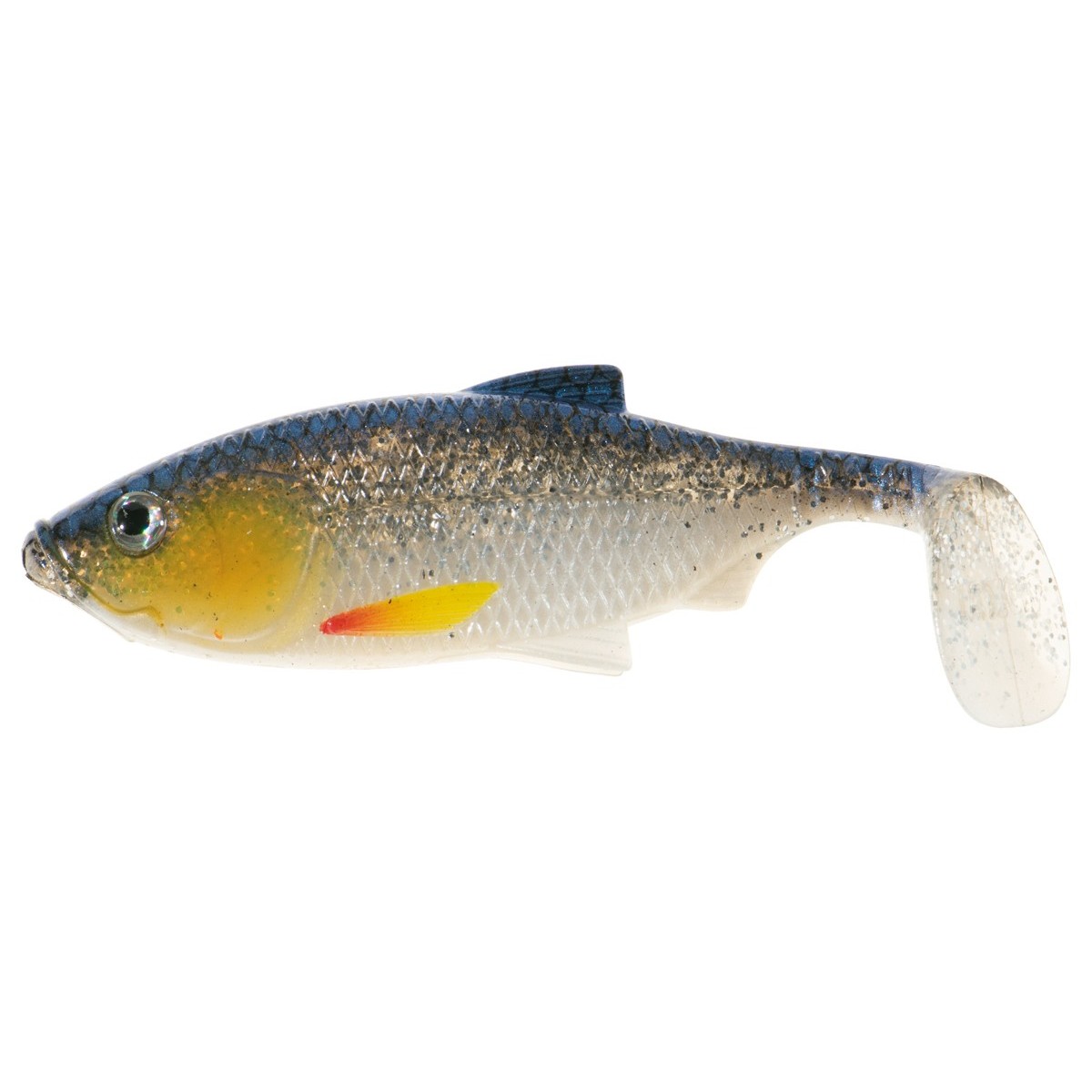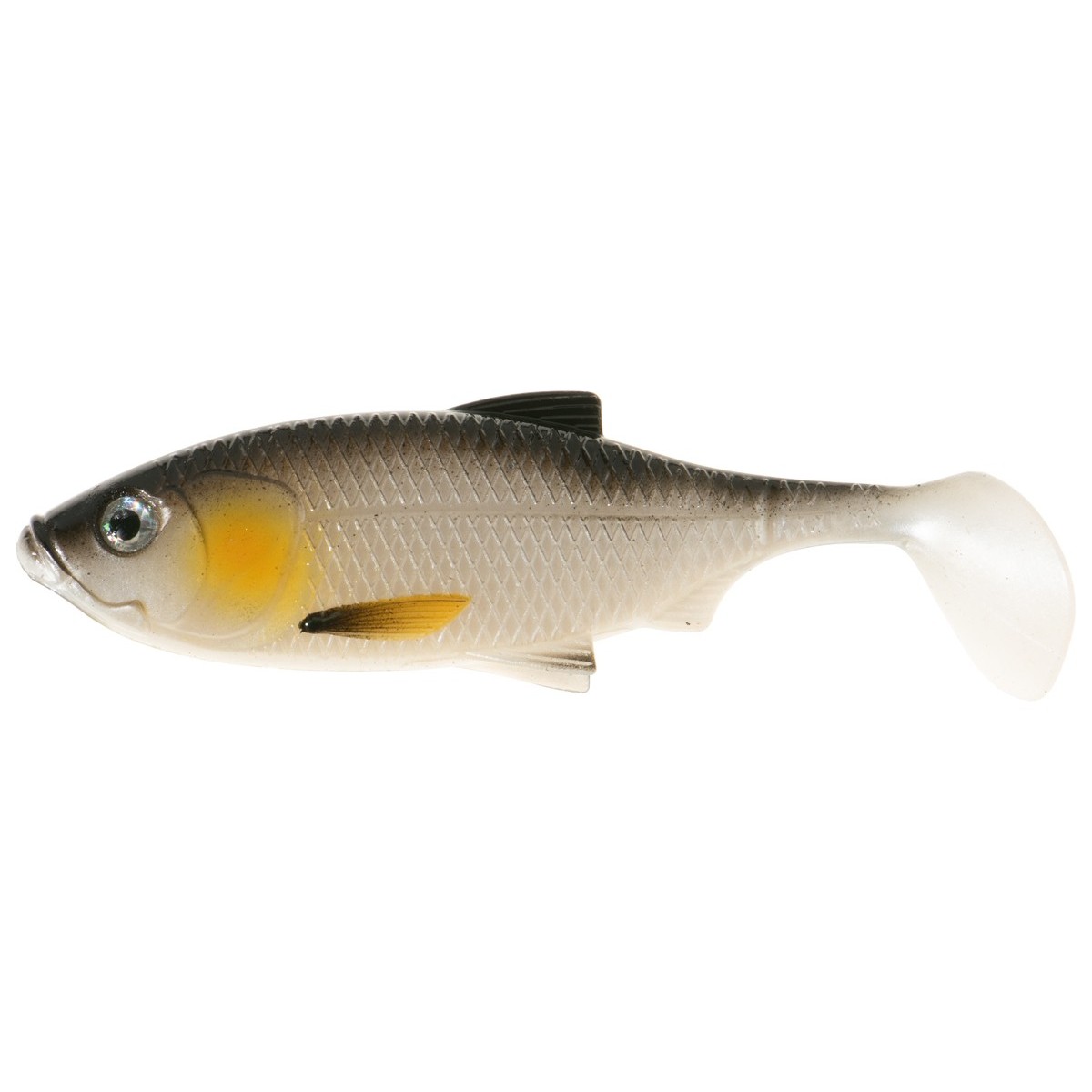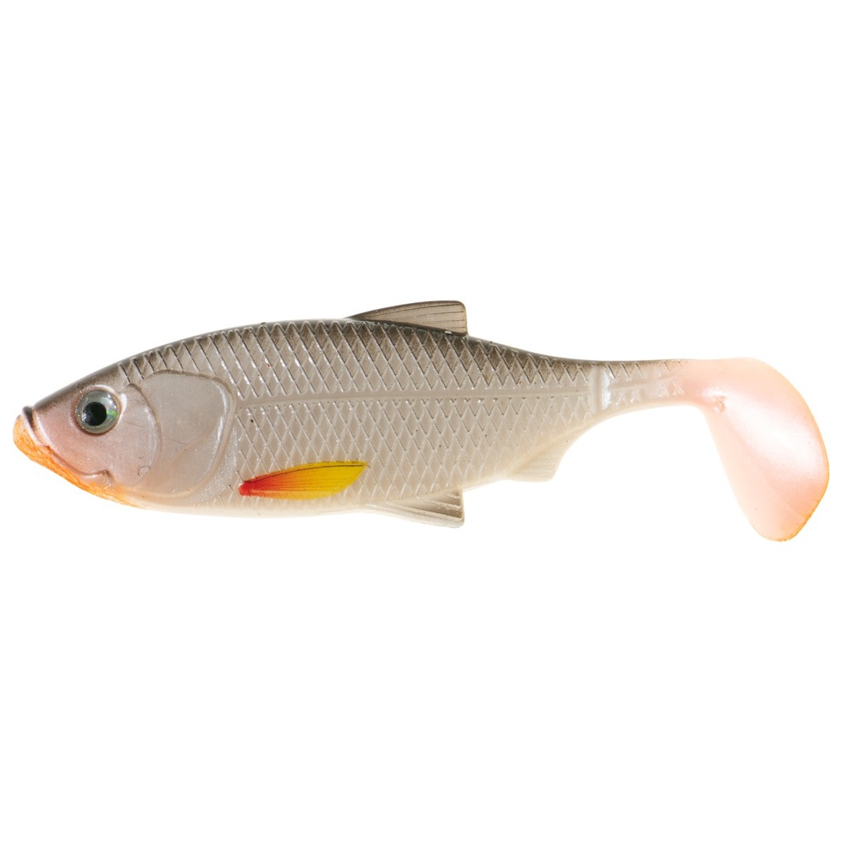Inspiracją do stworzenia kształtu tego modelu była natura, a właściwie drobny narybek krąpia, który jest przysmakiem wielu drapieżników, w szczególności okoni i sandaczy. Starannie zadbaliśmy o detale: realistyczna faktura łusek, linia boczna, płetwy oraz wyraziste oczy sprawiają, że przynęta wygląda jak żywa. Połączenie miękkiego korpusu z przewężeniami na ogonie i dużą paletką ogonową gwarantuje zarówno aktywną pracę ogona, jak i świetne migotanie oraz błyskanie na boki. Sprawdzi się w różnych technikach prowadzenia, od łowienia w opadzie po klasyczne, jednostajne zwijanie.