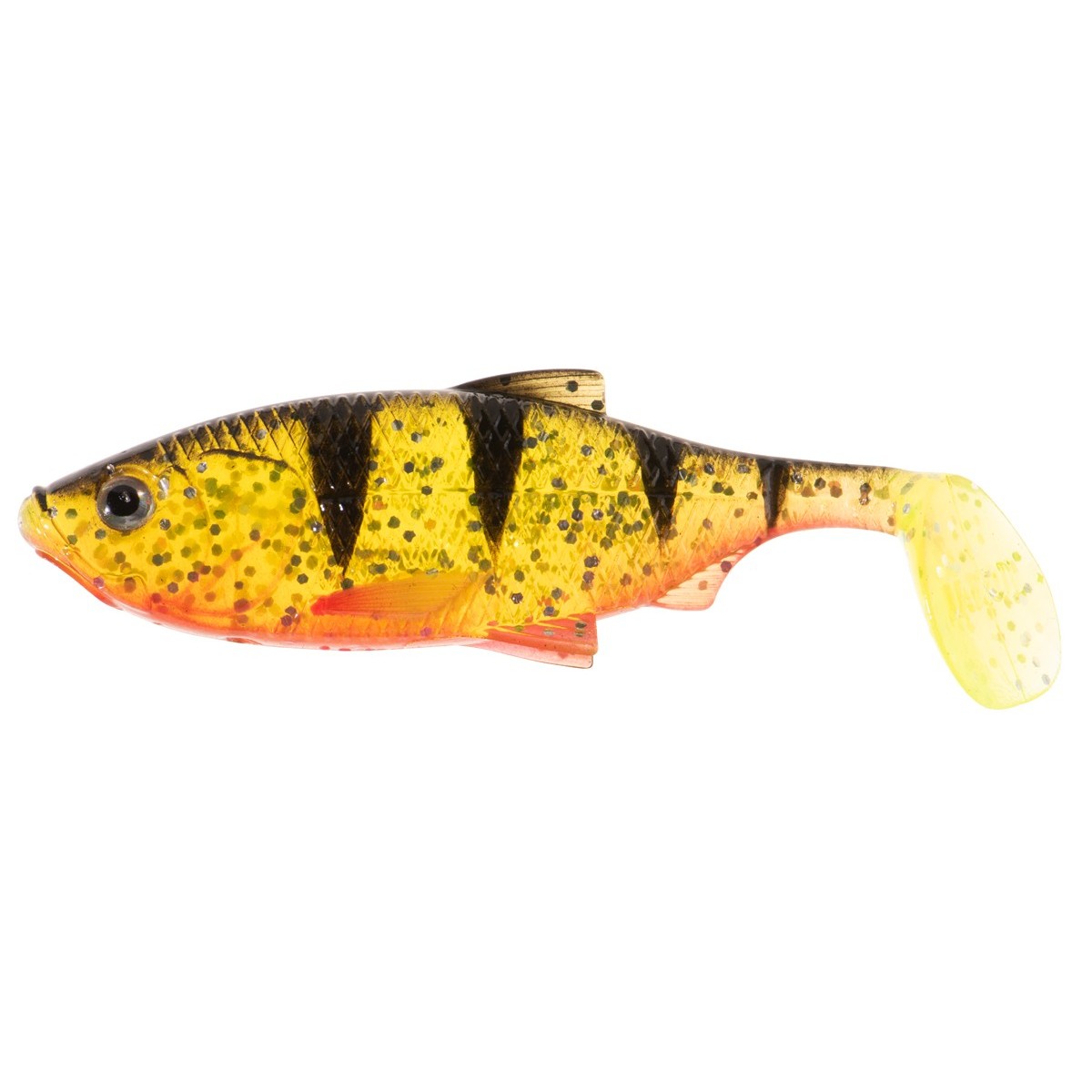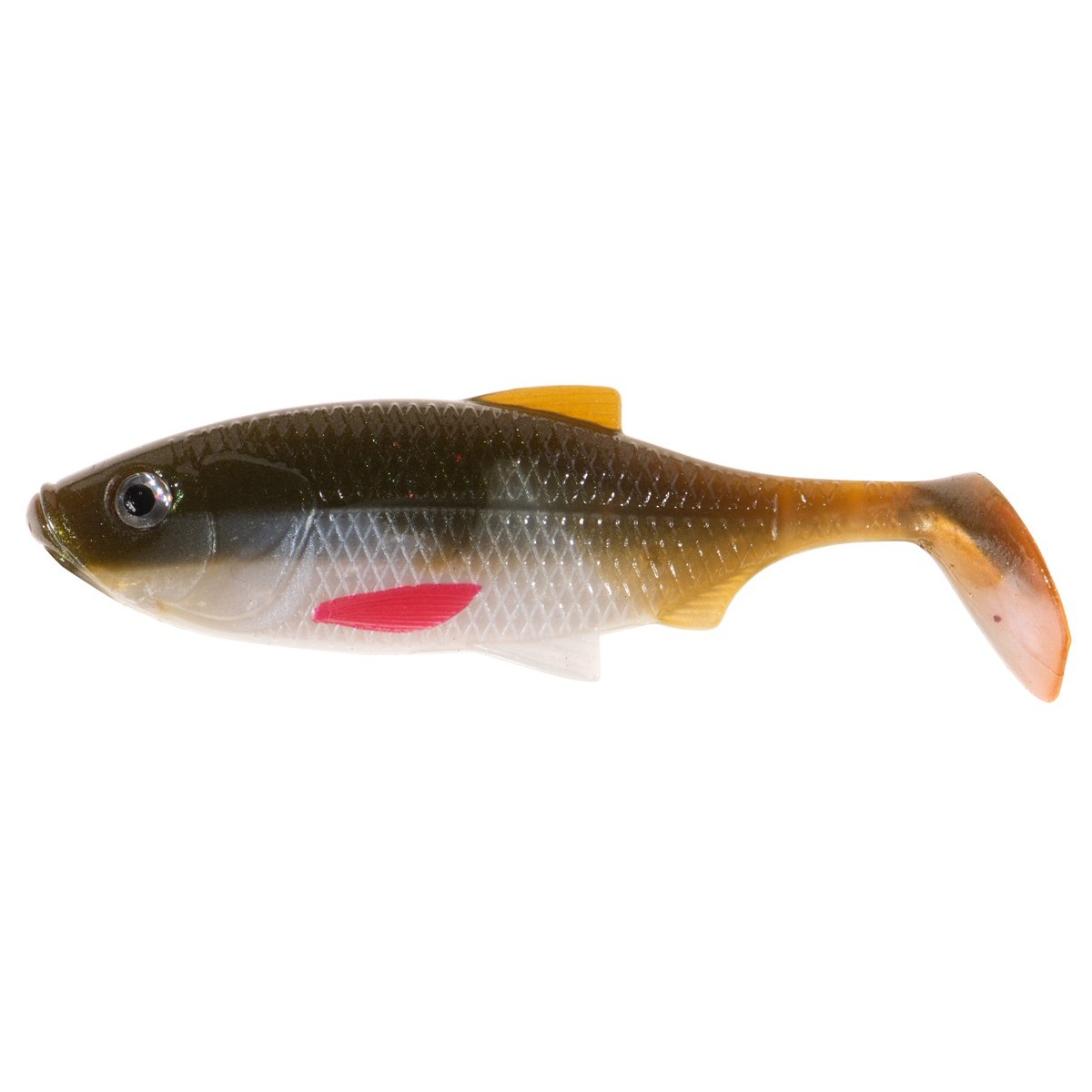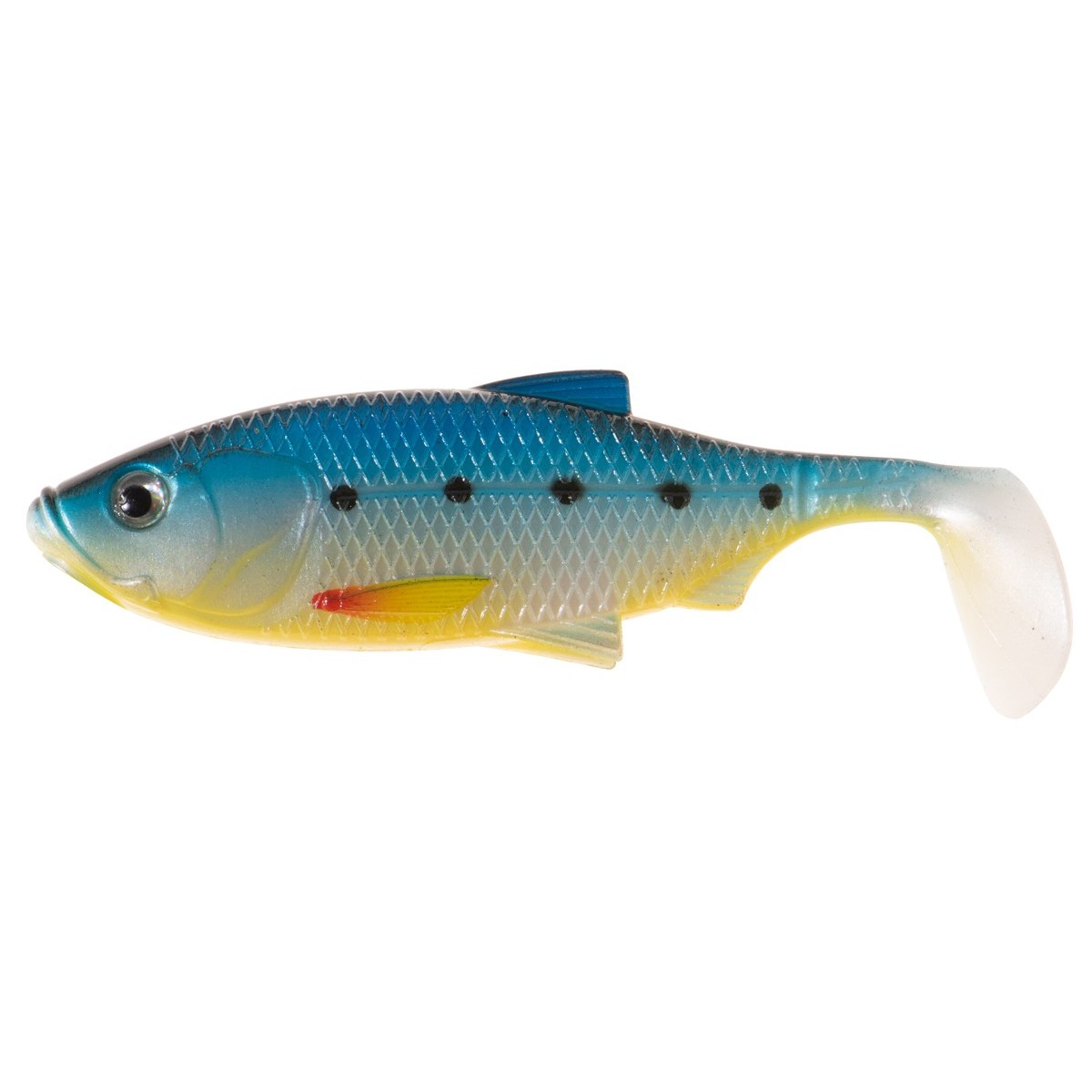 Inspiracją do stworzenia kształtu tego modelu była natura, a właściwie drobny narybek krąpia, który jest przysmakiem wielu drapieżników, w szczególności okoni i sandaczy. Starannie zadbaliśmy o detale: realistyczna faktura łusek, linia boczna, płetwy oraz wyraziste oczy sprawiają, że przynęta wygląda jak żywa. Połączenie miękkiego korpusu z przewężeniami na ogonie i dużą paletką ogonową gwarantuje zarówno aktywną pracę ogona, jak i świetne migotanie oraz błyskanie na boki. Sprawdzi się w różnych technikach prowadzenia, od łowienia w opadzie po klasyczne, jednostajne zwijanie.