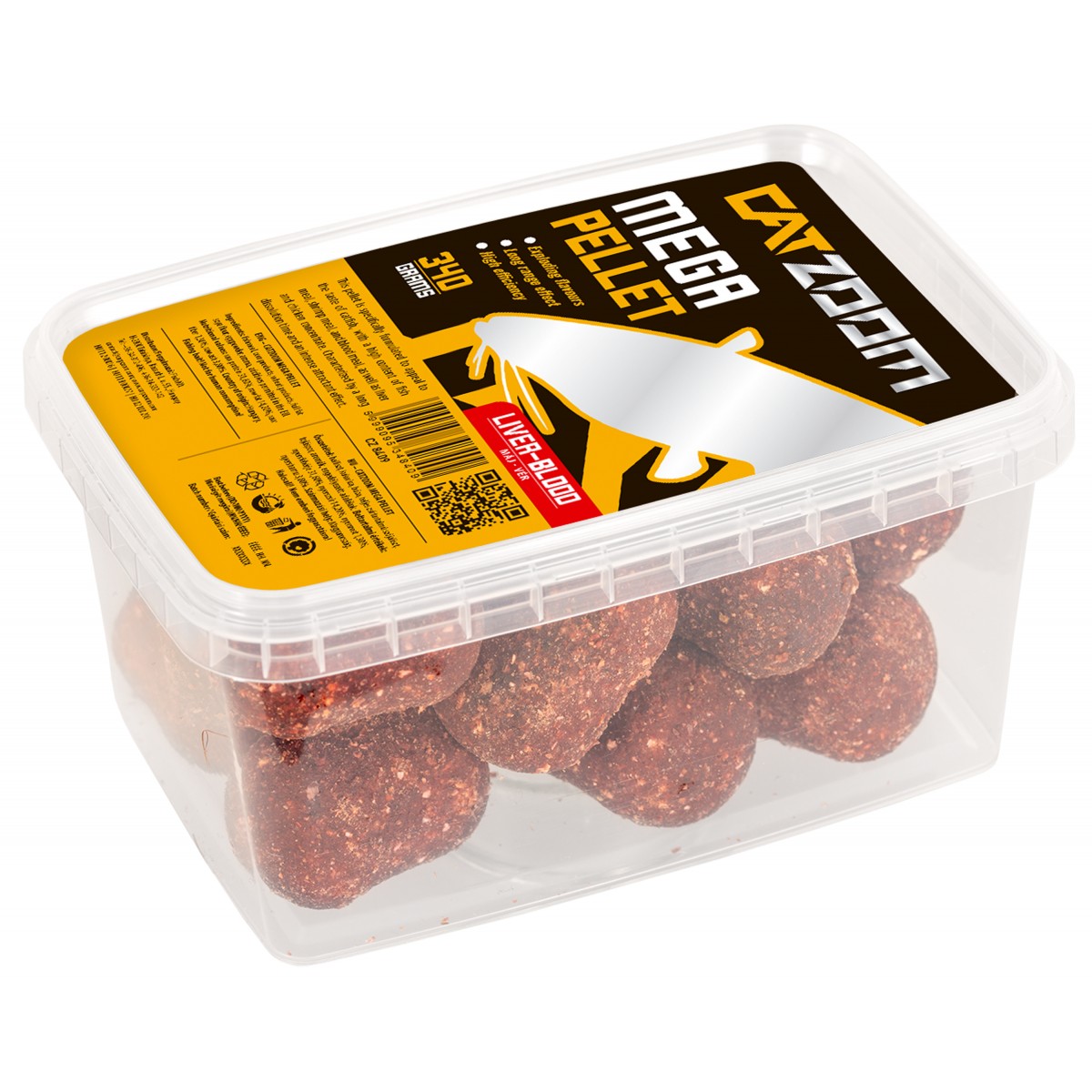 Intensywnie nasączony pellet o aromacie ryba–mięso lub wątroba-krew to idealna propozycja do łowienia sumów na zestaw włosowy. Świetnie sprawdzi się jako przynęta główna lub jako dodatkowy element wabiący. Dostępny w opakowaniach 340 g.